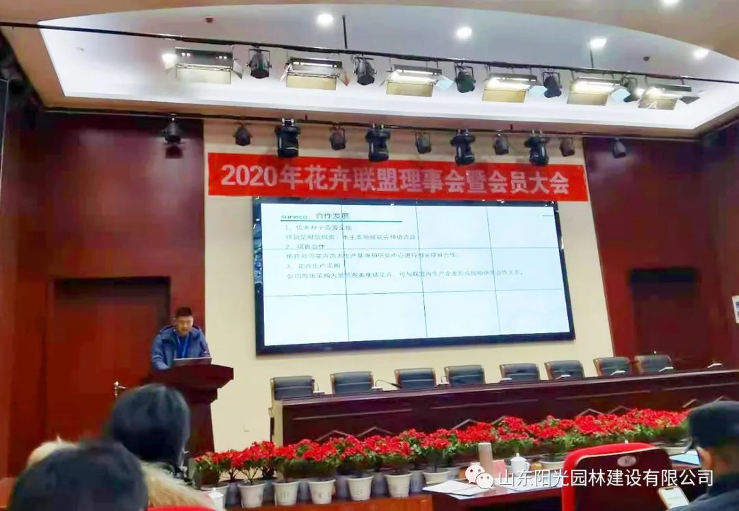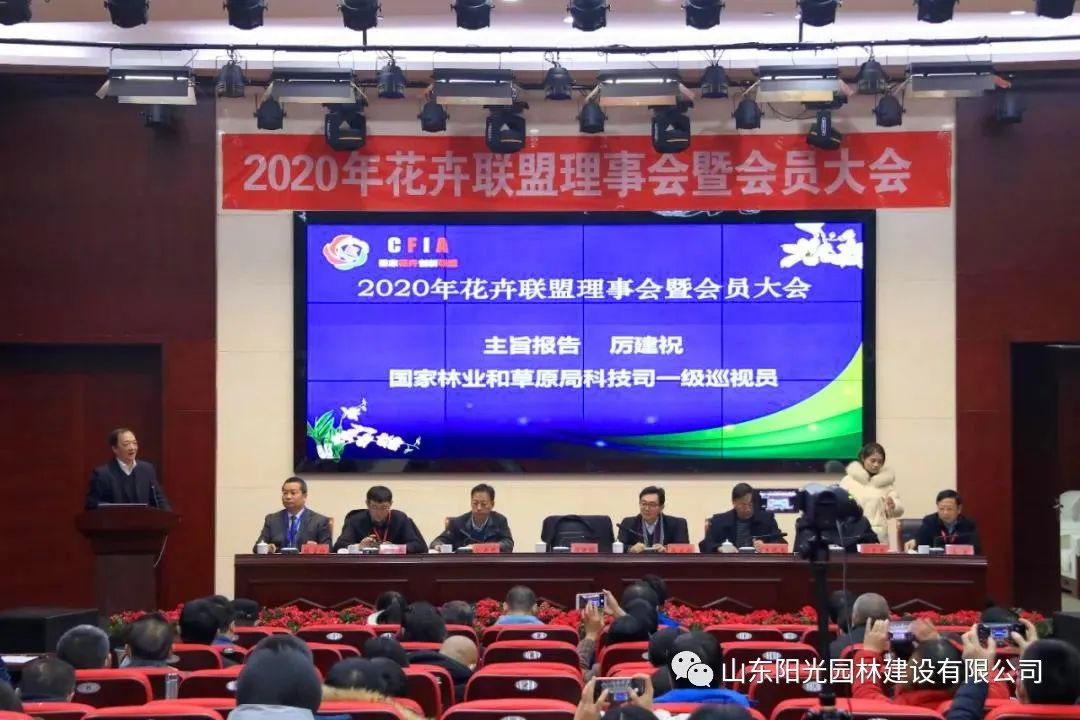 2020年12月27-29日,國家花卉產業技術創新戰略聯盟2020年理事會暨聯盟成員大會在江蘇沭陽舉行,山東陽光園林建設有限公司副總朱西國、生產管理中心經理馬振華代表公司參加會議。