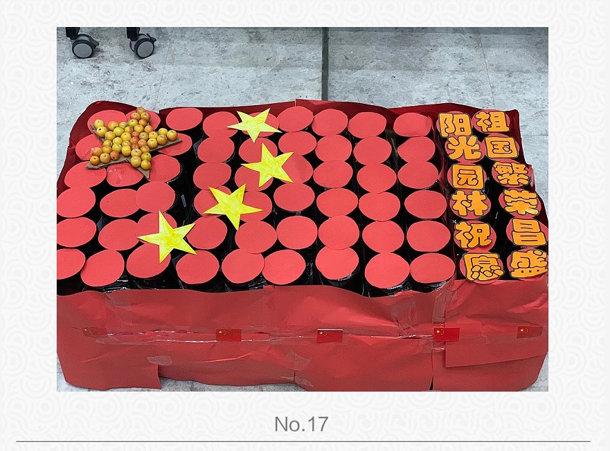 9月30日,山東陽光園林建設有限公司,以“慶祝中華人民共和國成立70周年”為主題,進行了“就地取材、廢物利用”的手工創作活動,致敬偉大祖國,祝福祖國繁榮昌盛,再創輝煌!